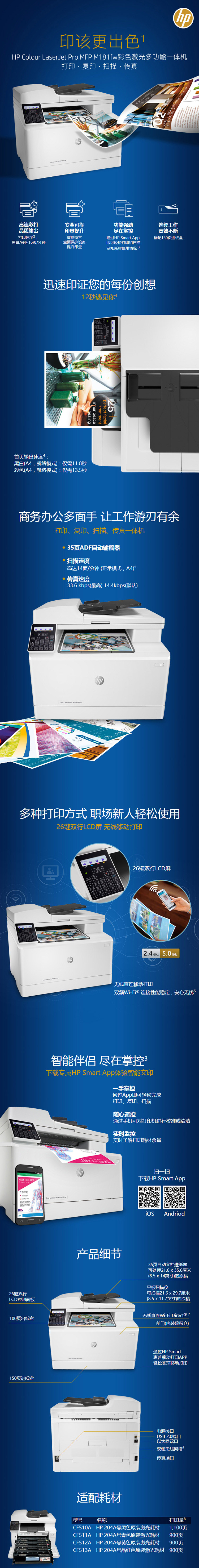HP Color LaserJet Pro MFP M181FW彩色四合一 多功能激光一体机